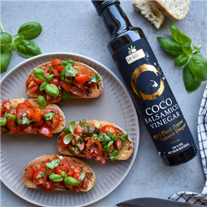Otet balsamic premium realizat din ingrediente 100% naturale certificate organic. Otetul balsamic de cocos Dr Goerg nu contine uleiuri vegetale acesta continand doar 2 ingrediente, sirop din flori de cocos si otet din flori de cocos. Gustul Otetului balsamic de cocos Dr Goerg este unul dulce - acrisor. Acesta are o aciditate de 5% ceea ce il face un otet balsamic foarte versatil ca si utilizare. Ideal pentru condimentare, marinare, rafinare si chiar pentru coacere.