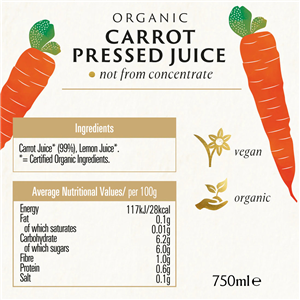 Sucul de morcovi organic Biona aduce bunatatea naturala a uneia dintre cele mai hranitoare legume din lume intr-un suc delicios. Morcovii provin din ferme atent selectate, unde sunt cultivati organic, recoltati si presati imediat pentru a le capta intreaga savoare. Lucrul perfect pentru a va revitaliza corpul si mintea. Sucul de morcovi poate fi servit simplu sau ca un plus hranitor pentru smoothie-ul tau de dimineata, poate fi adaugat in supe si ciorbe pentru un aport hranitor.