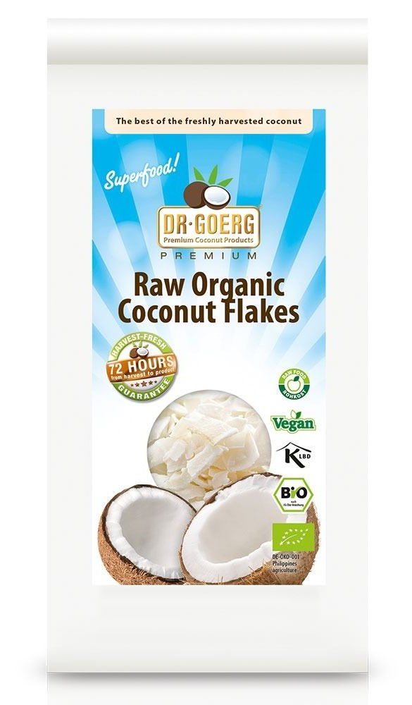 Fulgi de cocos bio, cruzi (raw). Garantia prospetimii Dr. Goerg: produsul este realizat in maxim 72 de ore de la recoltarea nucilor de cocos!