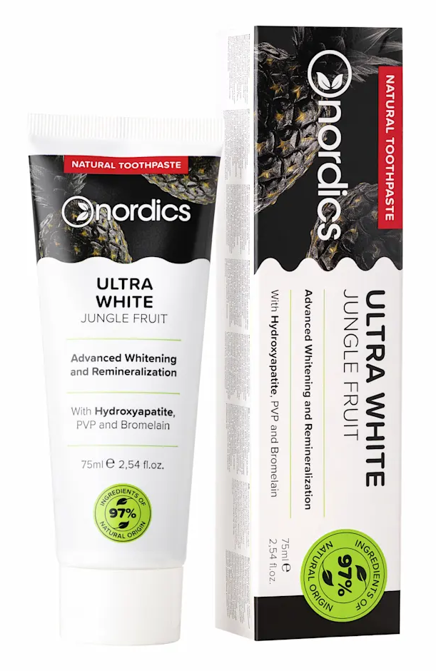 Ingrediente INCI: AQUA, SORBITOL, HYDRATED SILICA, GLYCERIN, HYDROXYAPATITE, CELLULOSE GUM, CHARCOAL POWDER, AROMA, SODIUM LAURYL SARCOSINATE, STEVIA REBAUDIANA EXTRACT, PVP, BROMELAIN, PHENOXYETHANOL, CAPRYLYL GLYCOL, MENTHOL, PINENE, LIMONENE, MENTHA VIRIDIS LEAF OIL.