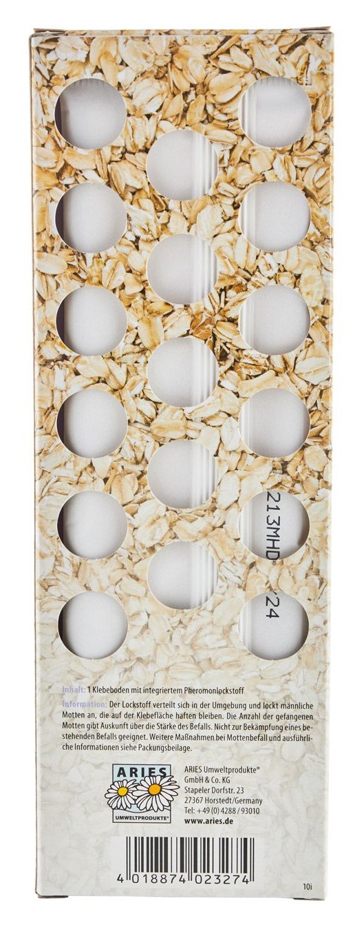 Capcana adeziva pentru moliile de alimente Aries, non-toxica si inodora, pentru detectarea unei infestari cu molii devine activa imediat dupa indepartarea peliculei protectoare mari. Capcana adeziva Aries este potrivita pentru monitorizarea infestarilor cu molii din camara, bucatarie si camere de depozitare.