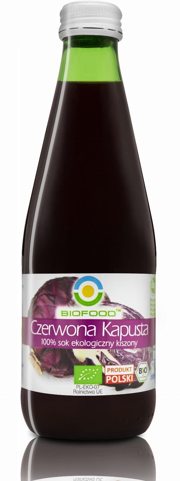 Suc de varza rosie lactofermentata: NFC - presat, nu din concentrat, produs pasteurizat. Fara gluten. Fara OMG.