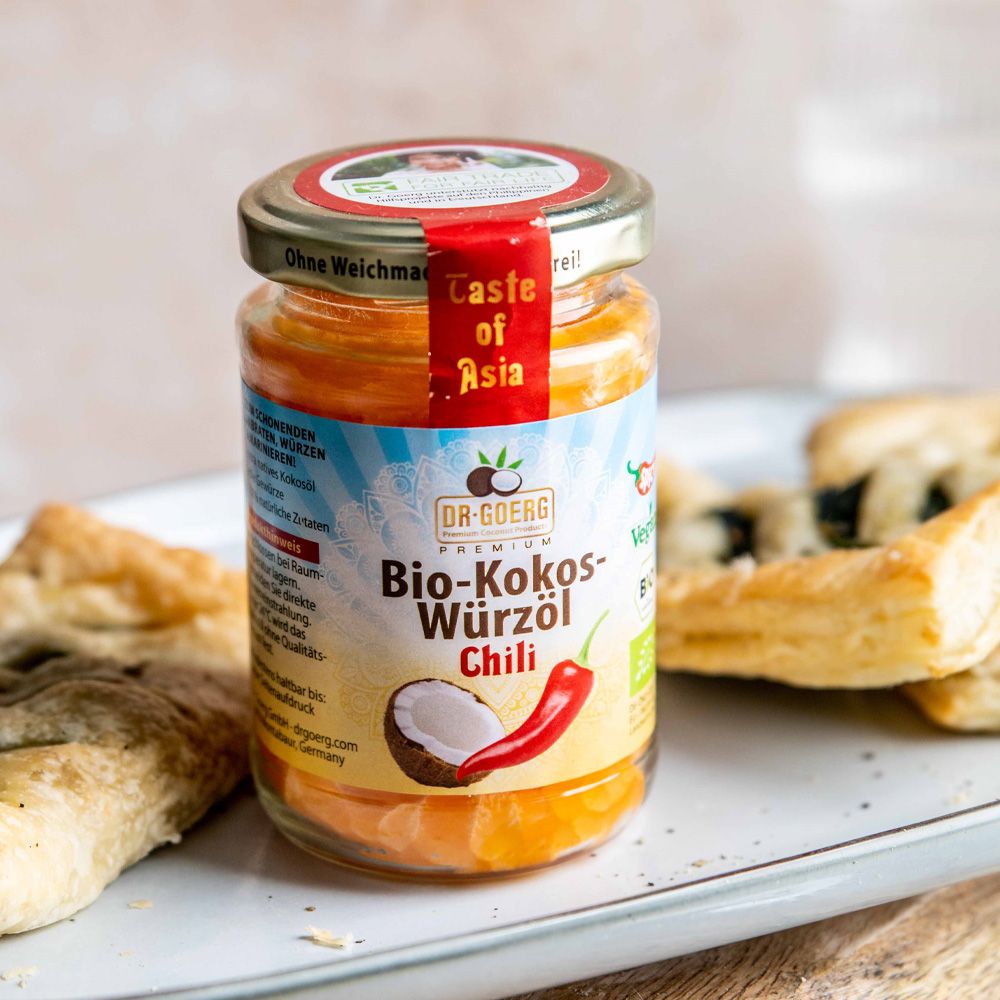 Gama de uleiuri de cocos condimentate de la Dr. Goerg ofera o savoare exotica preparatelor tale culinare. Ingredientul principal este inegalabilul ulei premium de cocos Dr. Goerg, de o calitate exceptionala, fiind procesat in maxim 72 de ore de la recoltarea nucilor de cocos.