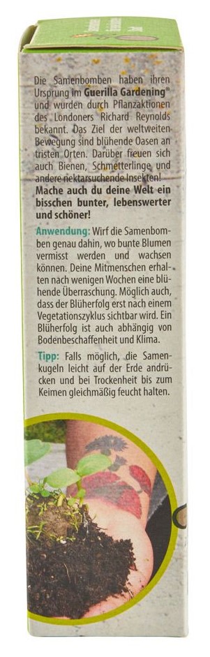 Mod de utilizare: Aruncati bilutele cu seminte acolo unde sunt necesare flori colorate si unde pot creste. Dupa cateva saptamani, acestea se vor transforma in mici oaze colorate, oferind o sursa pretioasa de hrana pentru albine si alte insecte benefice.