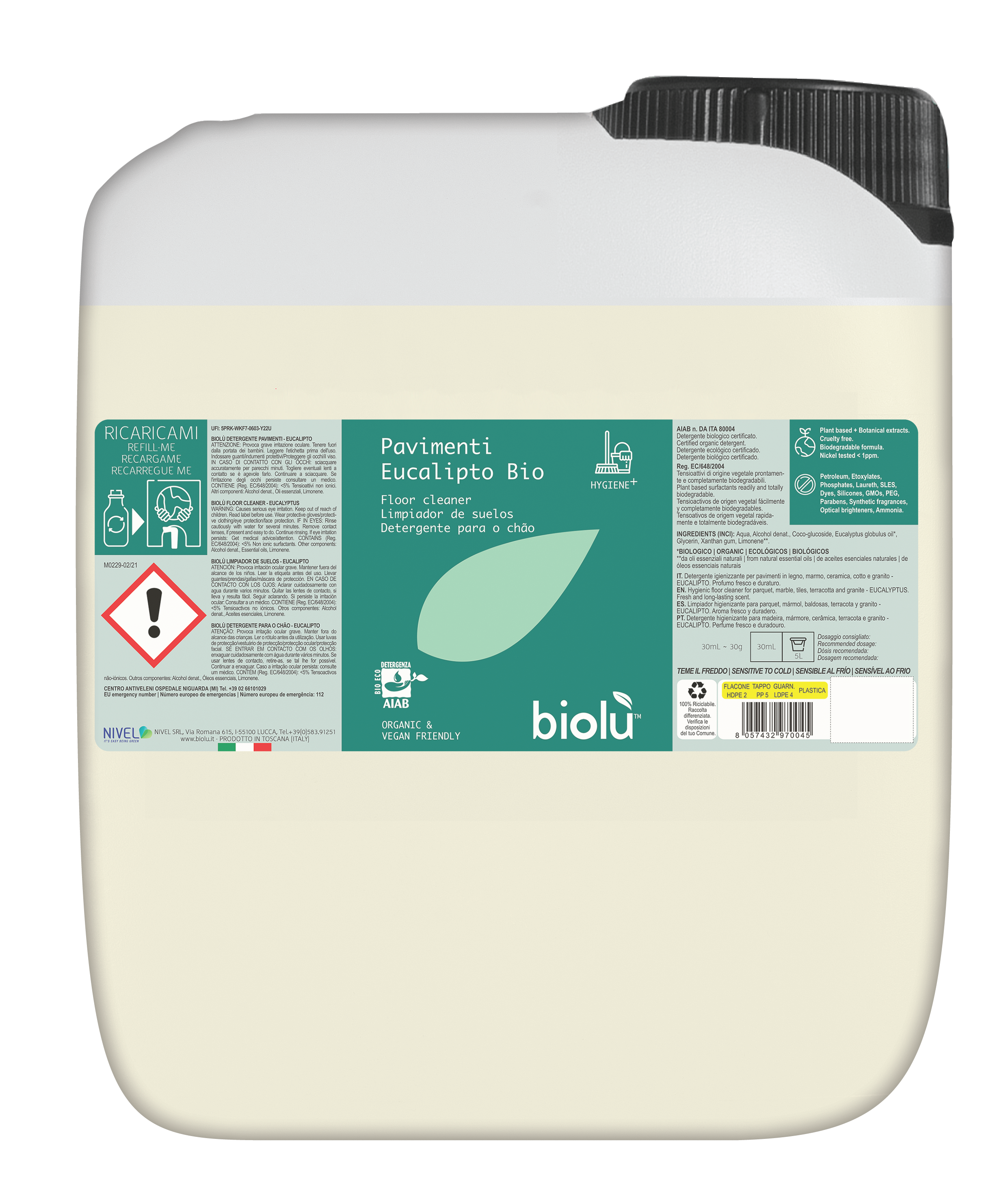 Un detergent delicat, non-agresiv, cu ulei esential de eucalipt din agricultura ecologica. Lasa un miros placut, si este potrivit pentru toate tipurile de pardoseala: ceramica, teracota, parchet, parchet laminat, linoleu, marmura, granit.