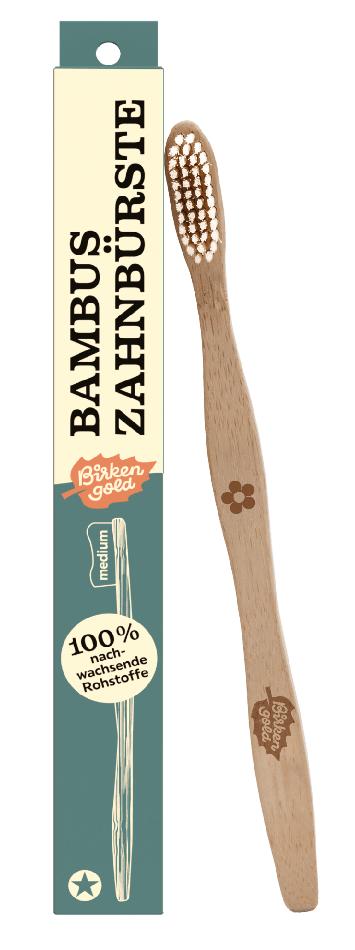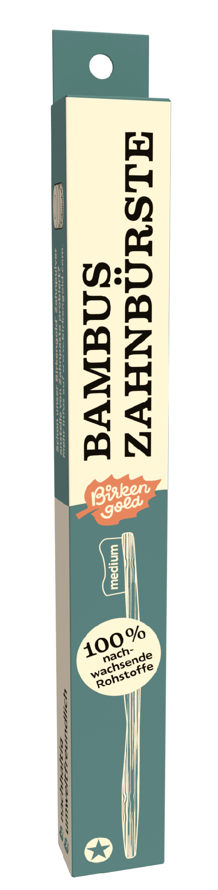 Periuta de dinti este ambalata fara plastic, intr-o cutie de carton reciclat, pentru o planeta sanatoasa - din materii prime 100% regenerabile