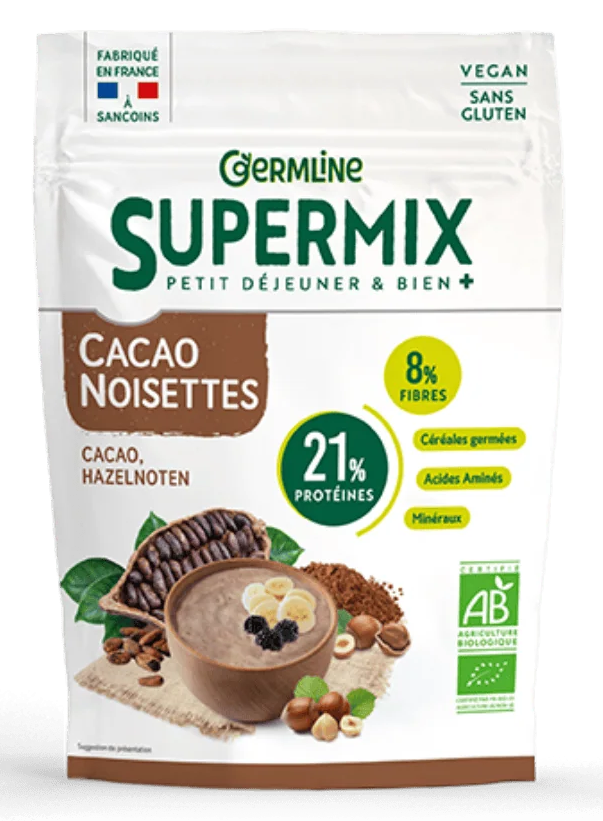 Un supermix sub forma de pudra instant din cereale germinate cu alune de padure si ciocolata, din agricultura ecologica.